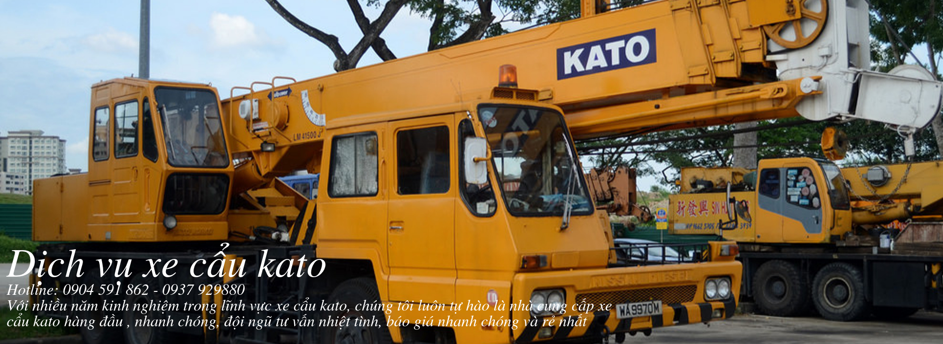 Quý khách hàng có nhu cầu thuê xe cẩu kato hay còn gọi là xe cẩu chuyên dùng hãy gọi ngay cho chúng tôi theo hotlite 0904 591 862 để được tư vấn miễn phí mà chất lượng đảm bảo an toàn, giá thành lại rẻ, hoặc có gì thắc mắc xin liên hệ